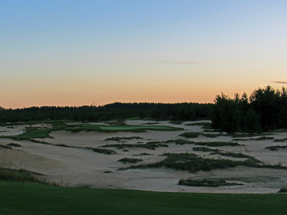 David McLay Kidd’s follow up act to Sand Valley opened to great acclaim at the Wisconsin’s growing golf mecca. One of the holes that stands out is the beautiful par three 8th, which ranges in distance from 90 to 195 yards. After walking off the 7th green, guests are treated to a gorgeous green. Kidd laid the green on top of the site’s sand and it appears to float on the horizon. It’s clear that he and his associates moved little to no earth to construct this hole. Listen to our podcast with Casey Krahenbuhl discussing his work at Mammoth Dunes here
