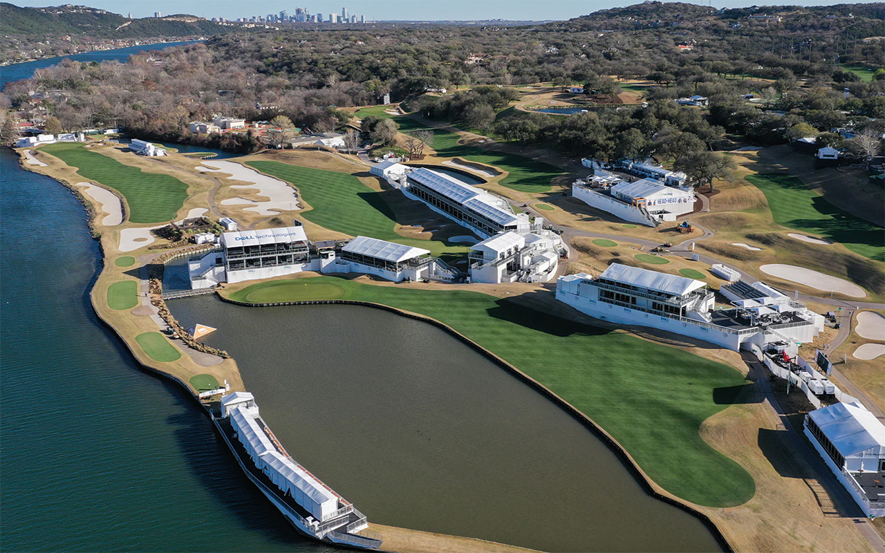 The extreme danger is a water hazard left of the green. Some players find the water off the tee, as Sahith Theegala did in 2022. Theegala took his penalty drop next to the green, hit an average chip shot, and left himself 13 feet for par. Water hazards may look intimidating, but they also impose a ceiling on high scores. Players who hit tee shots or sloppy chip shots into the water on 17 at TPC Scottsdale experience a quick moment of frustration, but then they drop right next to the green. Boring!