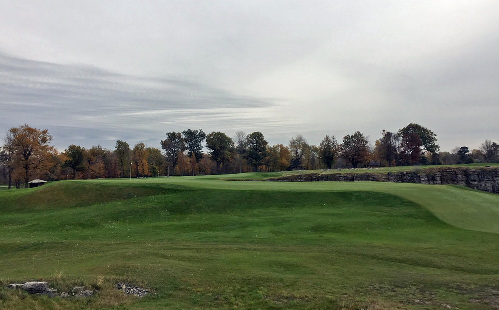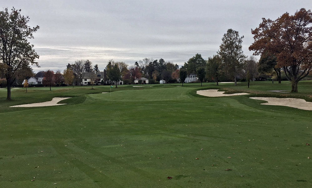 The 237 yard eighth at the Country Club of Buffalo highlights the land given to Ross. A ridge runs perpendicular to the hole about 100 yards from the front of the green. Hes used this ridge to naturally carve two bunkers which add deception and strategy to the hole.