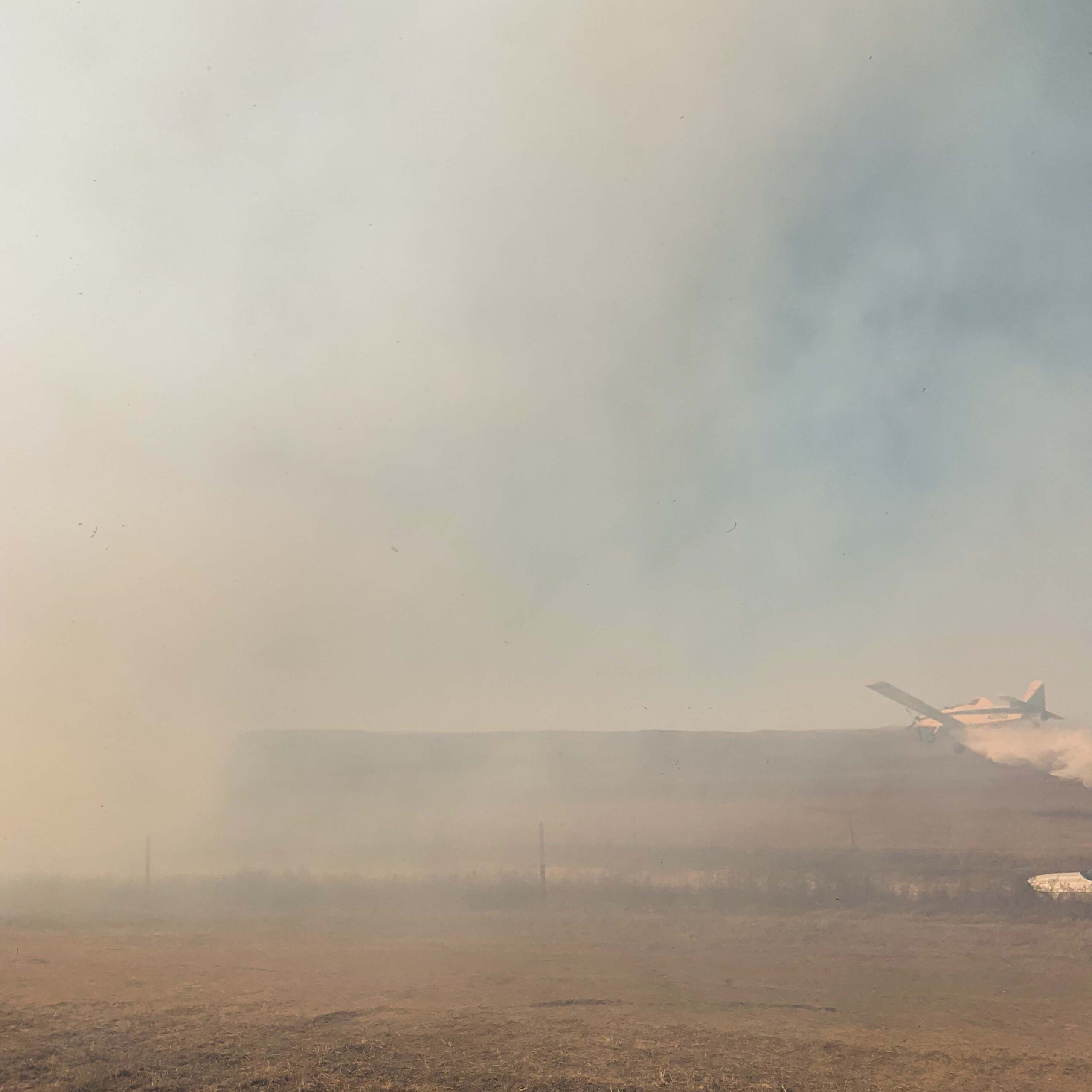 Plane dousing the fire on GrayBull's perimeter (photo credit: GrayBull)