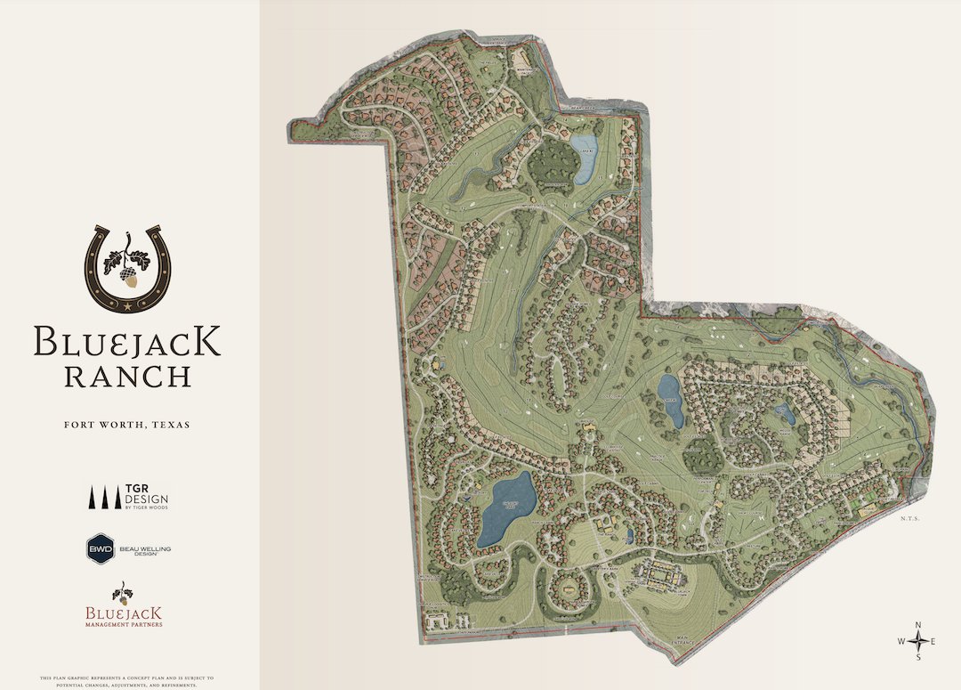 Tiger returns to Texas: Tiger Woods announced last Thursday that his architecture shop TGR Design will reunite with the owners of Bluejack National to create Bluejack Ranch, “a new and exceptional golf community” near Fort Worth, Texas. The course is expected to debut in early 2026, while the ranch will likely open in the first quarter of 2025. Judging from the plan, Bluejack Ranch will be… uh, heavy on real estate.