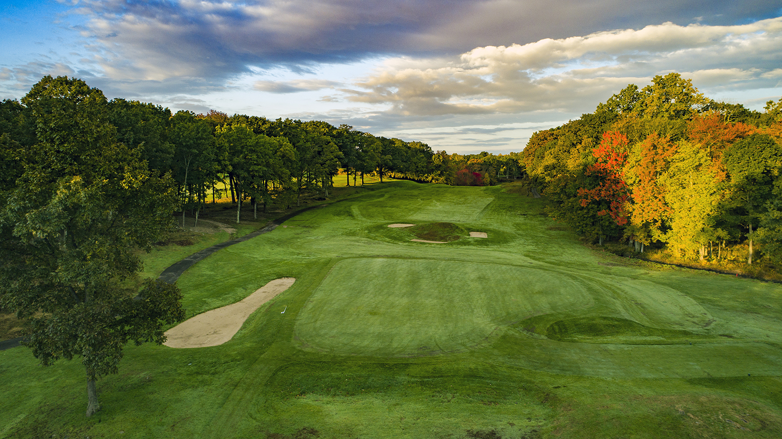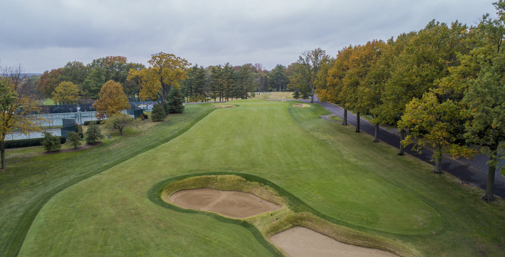 The oft-overlooked Seth Raynor design features a semi-blind tee shot that crests a hill. Once over the hill, the grand Double Plateau green complex is revealed. The front right and back right plateaus are guarded by a bunker. The front portion accepts a low running shot and a shot a little left will feed in. The front left side is propped up with the land’s natural slope and is best approached from the right side of the fairway.