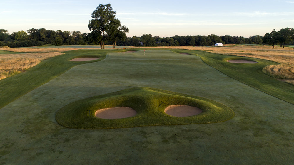 At Chicago Golf’s Double Plateau hole, players first need to navigate a bunker that sits in the middle of the sixth fairway. A good drive will leave a short-iron approach to the tiered green. Poor approach shots leave nearly impossible up-and-downs.