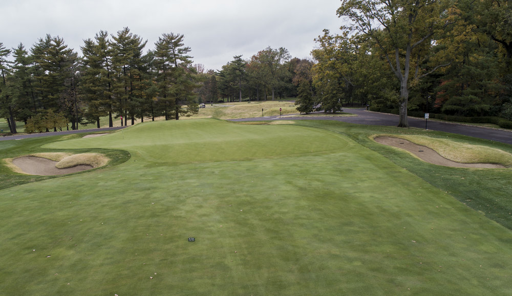 At Raynor’s North Jersey design, the 4th hole is a great example of how Macdonald and Raynor liked to lay out their Double Plateau hole. Starting with a blind uphill tee shot, the 4th requires a ball in the fairway in order to control the spin of your approach shot. The Double Plateau green features a severe false front that repels any shots that are a little short, while the back bunker catches any over zealous approaches.