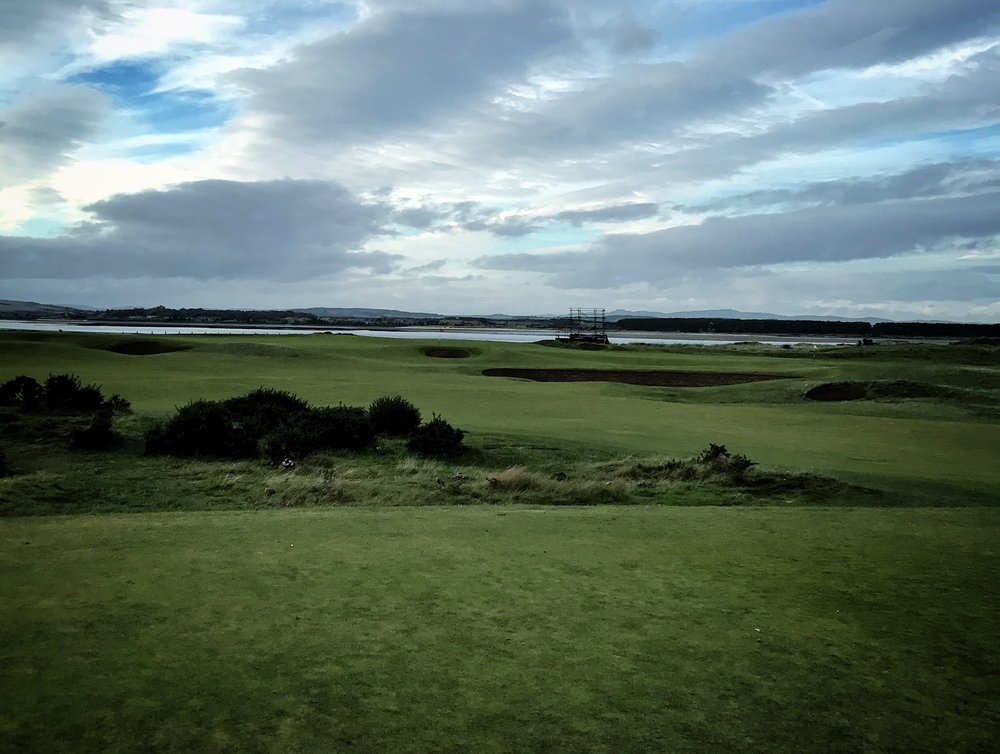 The severe green challenges both accuracy and distance control. The putting surface is canted, often leaving a great deal of break. Misses long of a pin will leave a quick putt. Missing in the wrong spot on this green can lead to embarrassment, such as putting the ball off the green, or worse into the Strath bunker. The place to miss on an Eden hole is short, which leaves an uphill chip or putt.