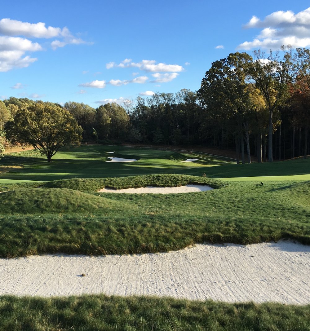 Tillinghast’s home course Philadelphia Cricket Club features one of his finest designs, the Wissahickon course. The 7th hole on the Wissahickon features a Great Hazard that sits 340 yards from the back tee. To make things even more difficult, Tilly placed bunkers in the landing area on both sides of the fairway. Find one of those bunkers and a layup short of the Great Hazard is likely. The green is protected by an extremely deep bunker, which makes long approaches tough.
