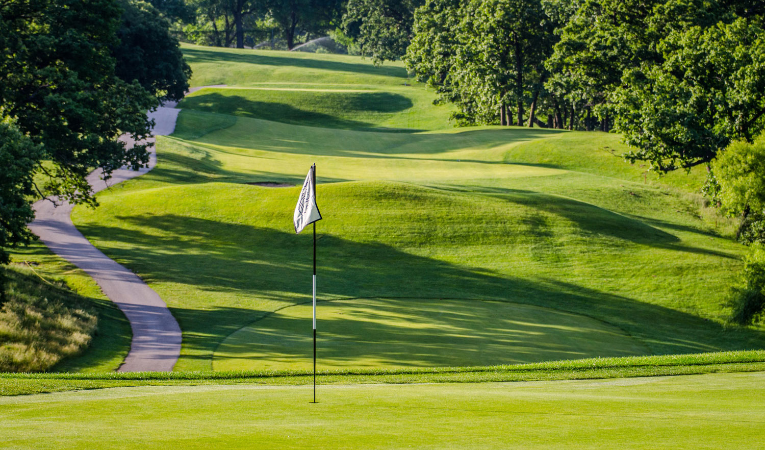 Starting just 265 yards from the tee, the Great Hazard on the 9th hole at Somerset Hills is unusually positioned. It’s easy for a strong tee shot to reach the bunker from the tee and spoil a chance to get home in two. To carry the hazard, it’s a robust 315 yards, attainable for only the longest players. An accurate tee shot down the left side will often offer a chance to get home in two. For those who lay up, the fairway leading into the green kicks hard to the left toward a series of bunkers.