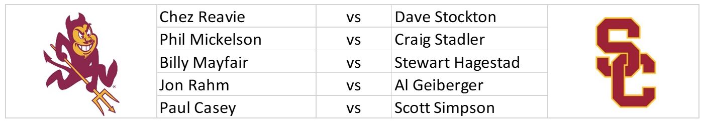 BYU and Arizona State—two proud institutions on opposite ends of the religious spectrum. If the Cougars ever needed a miracle from above, today is that day. In the lead pairing, Paul Casey made Zac Blair look like Blaire from The Facts of Life winning 6&5. Phil Mickelson roughed up Johnny Miller, and Chez Reavie handled Mike Weir, rendering the final two matches meaningless. Unphased by rumors of Mickelson potentially facing suspension for gambling on the matches, Arizona State wins 4-1 to move onto thethe Final Four with a relative ease.