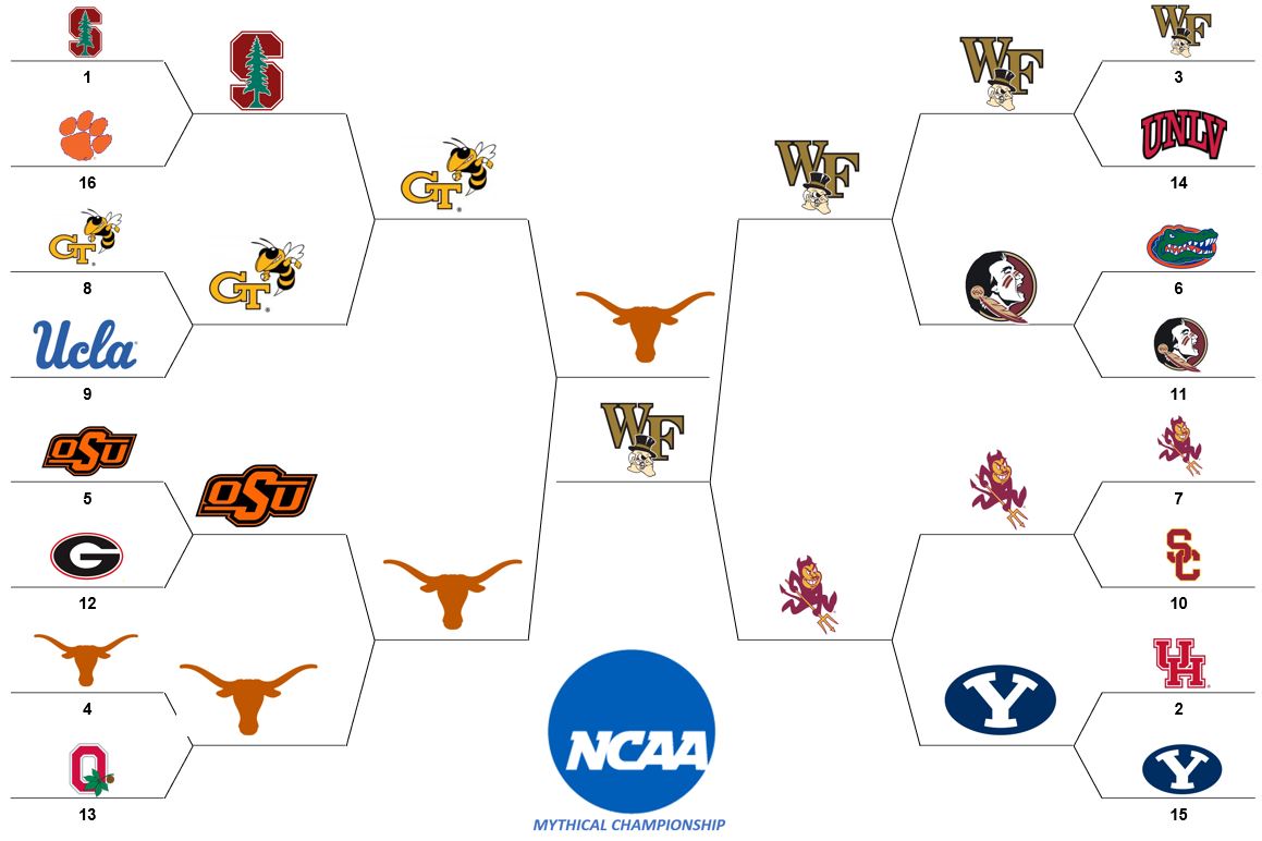 The Mythical National Championship is a 16-team match play tournament. Each team will consist of five players who will play head-to-head matches worth one point each.