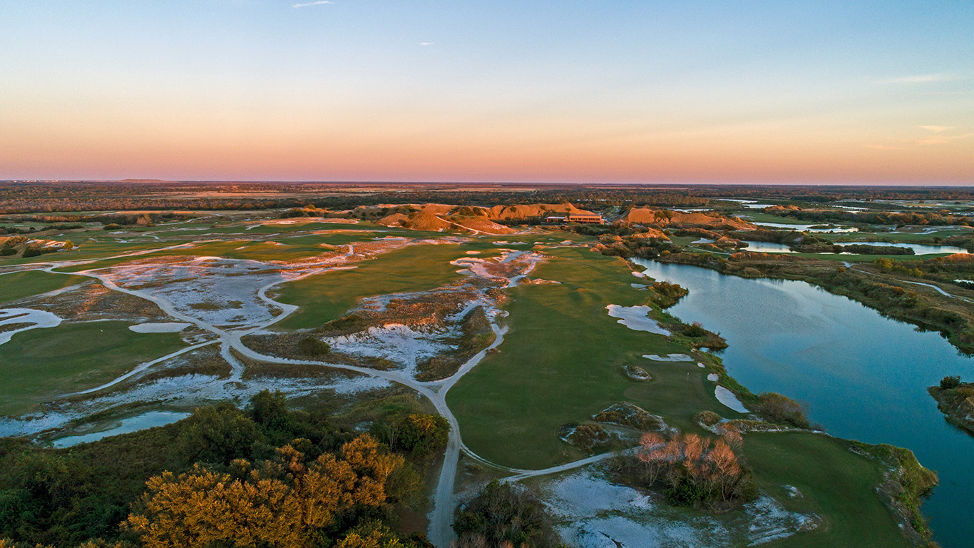 The construction of the first 36 holes at Streamsong is one of the most interesting stories in modern golf architecture. The firms of Coore & Crenshaw and Renaissance Golf Design worked together to squeeze two 18s holes into a small but spectacular site. Tom Doak’s Renaissance team ended up with the inside portion of the property, the best land at the resort. Their Blue Course features generous fairways and devilish greens, and Doak’s routing weaves through the compact site, leading golfers to the most impressive landforms at the beginning and the end of the round. The Blue Course’s greens have sharp contours that demand precise iron play and give each pin position its own character.