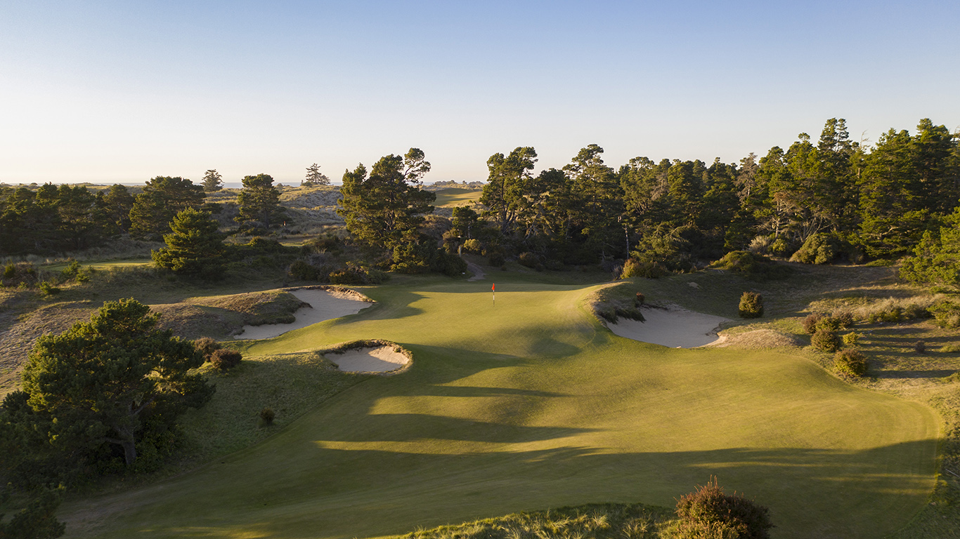 More than any course I’ve played, Bandon Trails is about the land it occupies. Bill Coore and Ben Crenshaw’s routing explores the big, varied property in stages. The first two holes bound up and over a dunescape; the next three move through a meadow; Nos. 6-13 climb into a dense forest; and No. 14 plummets back into the meadow. The climax of Coore & Crenshaw’s design, as it should in any well-structured narrative, comes just before the ending. On the 17th tee, you have the woodlands behind you, the beautifully cared-for meadow vegetation between you and the green, and the seaside linksland beyond. Yes, hole for hole, the course falls short of the greatest-hits collection that is Pacific Dunes. But as a story, a coherent experience that stirs the emotions, Bandon Trails may be my favorite at the resort.