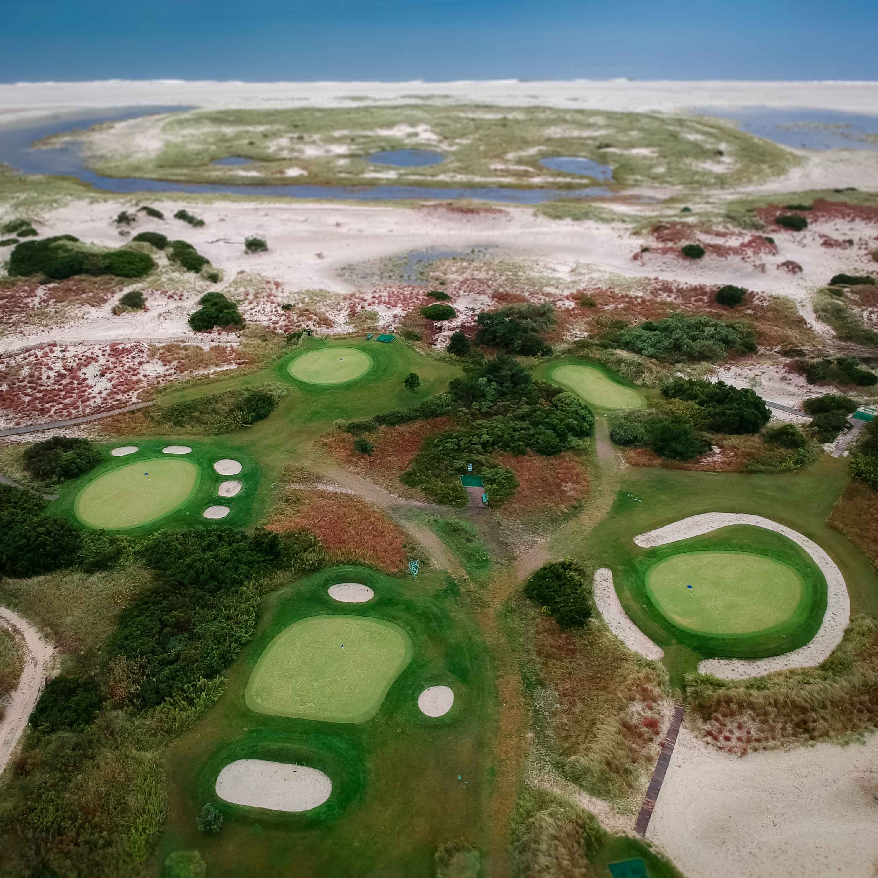 Tucked between the dunes and two parking lots on a 10-acre section of Nickerson Beach Park, the Dunes is one of two golfing options in the town of Lido Beach, New York (yes, that Lido). There’s the Robert Trent Jones-designed Lido Golf Club, a half-hearted replica built from faint memories of the lost C. B. Macdonald-Seth Raynor original. And there’s Nickerson, designed in 2015 as part of a post-Sandy redevelopment project by Tom Gordon, superintendent at the nearby Eisenhower Park facility, and Tom Lewis. The diminutive course honors the neighborhood’s golf history admirably.