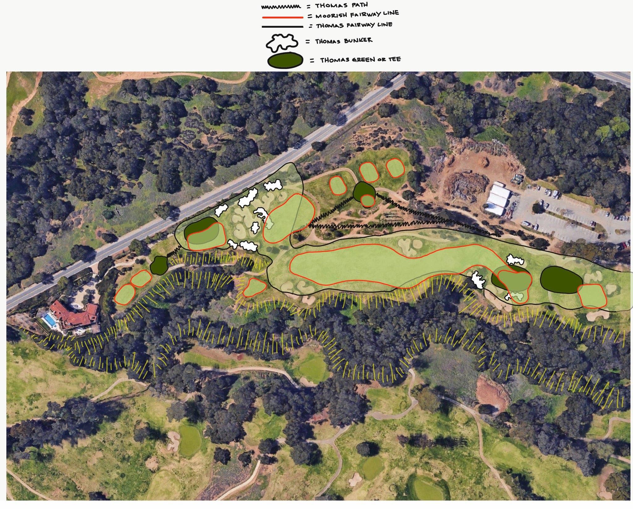 A rendering of the original routing of Thomas and Bell's Ojai Country Club, using various documents from the 1920s. Credit: Tommy Naccarato