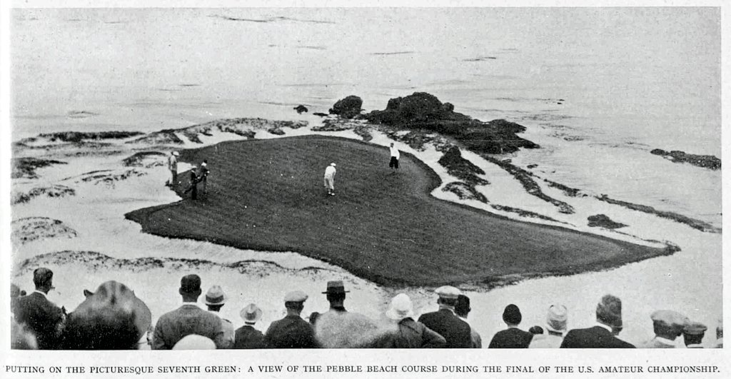With the U.S. Women’s Open at Pebble Beach this week, we can be sure of one thing: some people on Twitter and Instagram (and maybe Bluesky?) will post late-1920s photos of the famous par-3 seventh hole. I get why. They’re striking images, highlighting the audacious, if overenthusiastic, bunker work that Chandler Egan and Robert Hunter carried out in advance of the 1929 U.S. Amateur. Reliable magnets for likes and retweets.