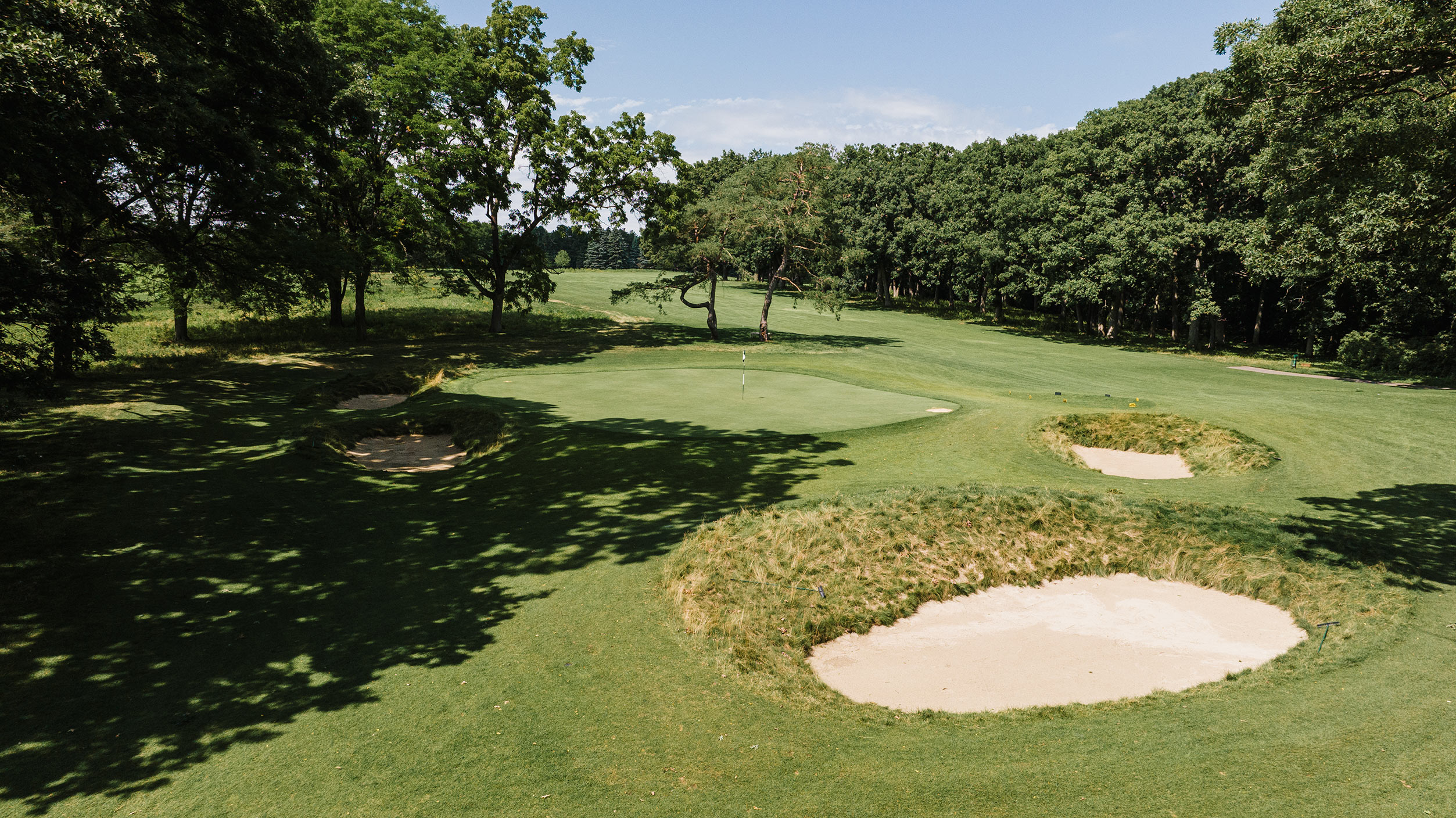 By my count, the Glen has a total of seven bunkers. Four of them can be found on the ravine-crossing par-3 sixth hole.