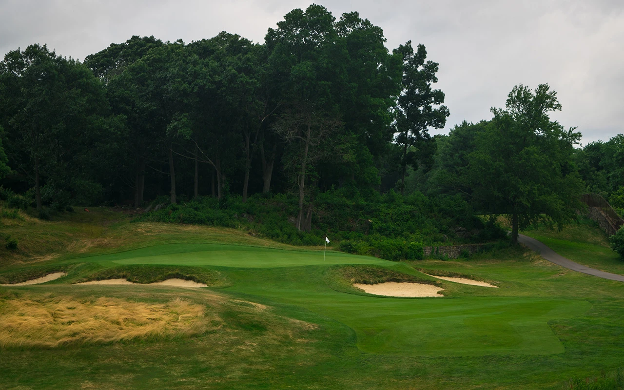 4/22/20 George Wright Golf Course (Hyde Park, Massachusetts) $$ George Wright was conceived in the late 1920s as a private club designed by Donald Ross. The Depression, however, put an end to its construction. The City of Boston then acquired the land and spent $1 million—a massive sum for the time—to build the course with Works Progress Administration labor. Overseen by Ross associate Walter Irving Johnson, construction used as many as 1,000 men. Forging playing corridors through the swamps and the extensive rocky ledge was an engineering feat. The course finally opened in 1938. Today, George Wright plays to 6,500 yards and a par of 70, winding through and over challenging topography. Rock outcroppings and massive oak and pine trees border the holes. There are several blind shots, which can vex the first-time player, but the course’s hole-to-hole variety and four tremendous par 3s have earned it the respect and devotion of those who play it often. Insider tip: George Wright’s recent resurgence culminated in 2018, when it became the first public course to host the Mass Amateur. -Mark Mungeam