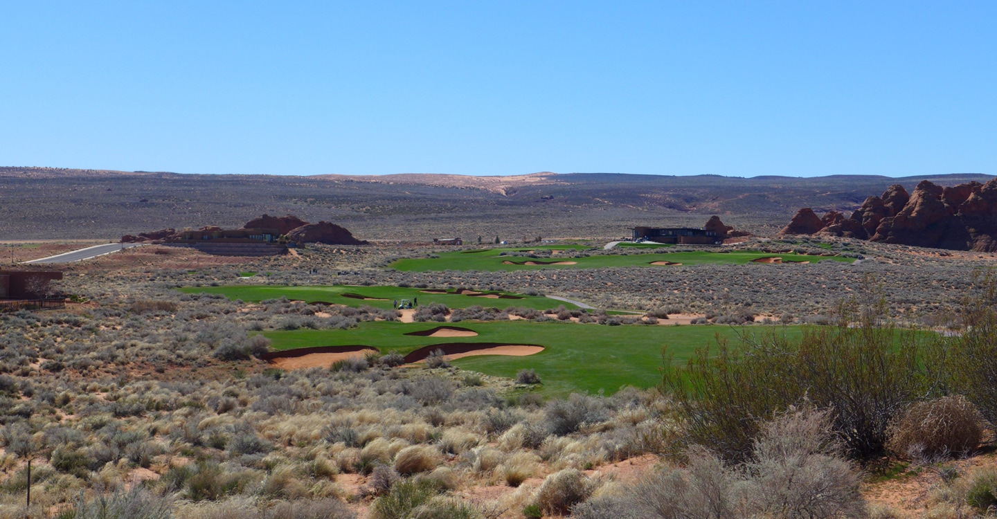 Where should I play golf in Las Vegas? This is a frequently asked question, especially when the northern winter is dragging on toward March Madness. It will likely come as no surprise that we think Vegas is a city where it is tough to find the architecturally interesting “bang for your buck” courses that we crave at The Fried Egg. But that does not mean we don’t have an answer to the question. Sin City visitors who have a day, a car and a sense of adventure can play one of the most underrated courses in America…in Utah.