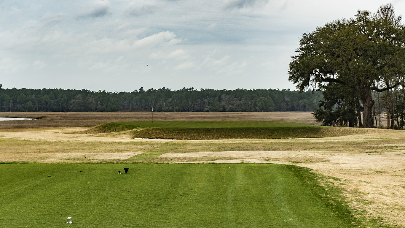 The Short at the Country Club of Charleston sits in the middle of the course’s dramatic closing stretch. Following the Lion’s Mouth 16th, players play off the course’s most dramatic feature, a subtle hill to the recently restored 17th green. Consulting architect Kyle Franz recently brought back the original bunker style which surrounds the 17th in sand. The now island green features a thumbprint in the middle and makes for challenging pins on each of the corners of the green. When the wind blows, this hole becomes particularly vexing.