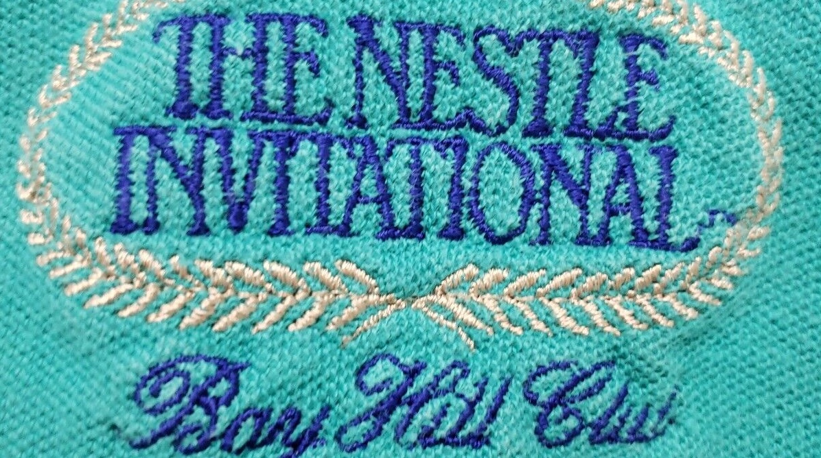 A vintage Nestle Invitational logo. You don't see that specific color of turquoise used for polos anymore, huh? Really had a moment in pro shops in the 90s.